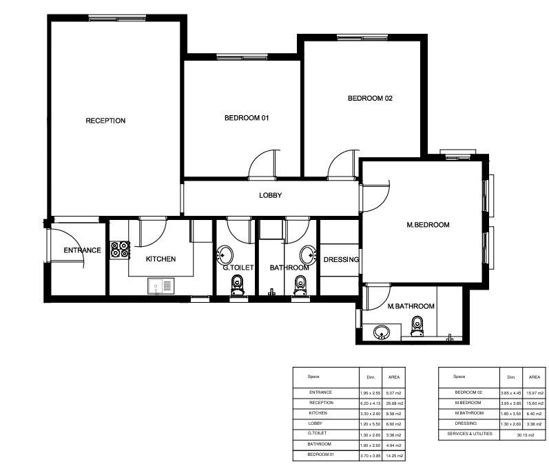 BUA: 165 SQM with roof 90 SQM